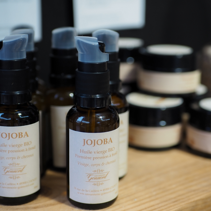 Les savons, baumes, huiles, shampoings, sont fabriqués ou conditionnés dans notre atelier à Cholet.