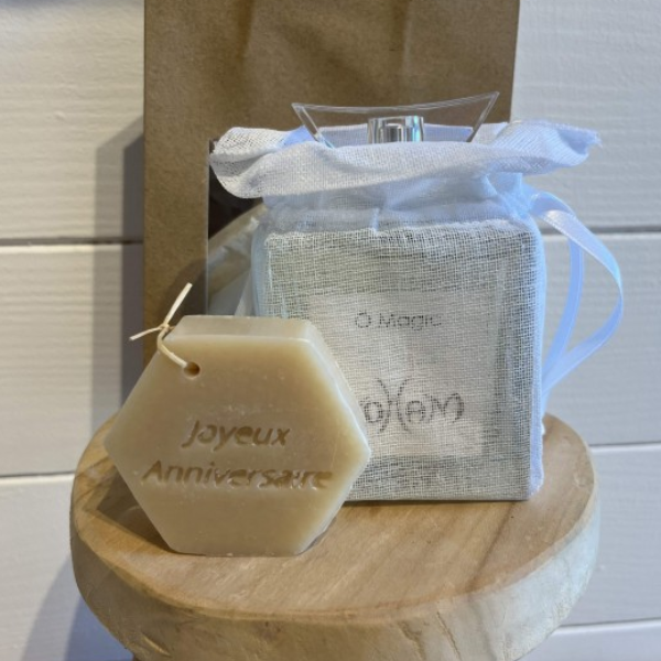 Dans ce coffret, découvrez notre nouveau parfum "O Magic", Floral, fruité et frais, ainsi que notre savon Frangipanier